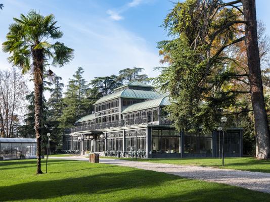 Al piano terra del giardino d'inverno si trovano una tavola calda self-service e un bar.